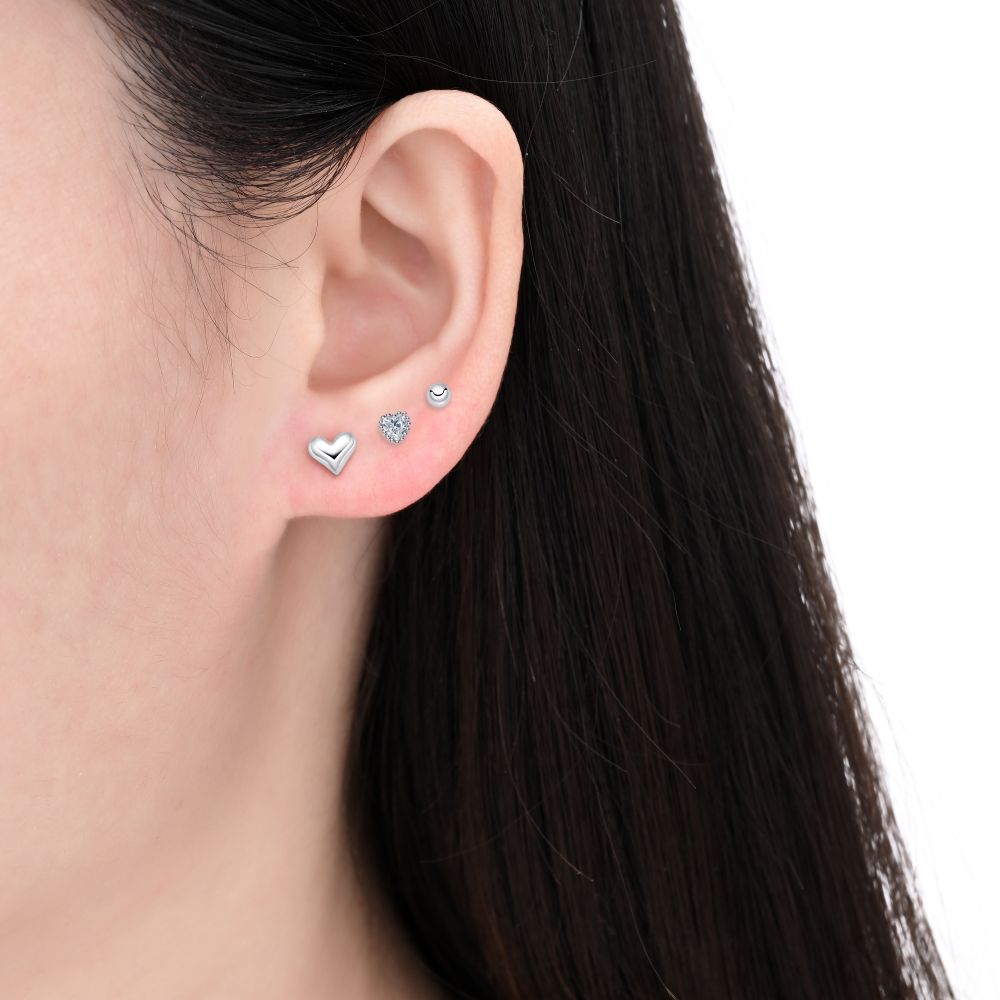 MOISS stříbrné náušnice SRDCE 4-6mm