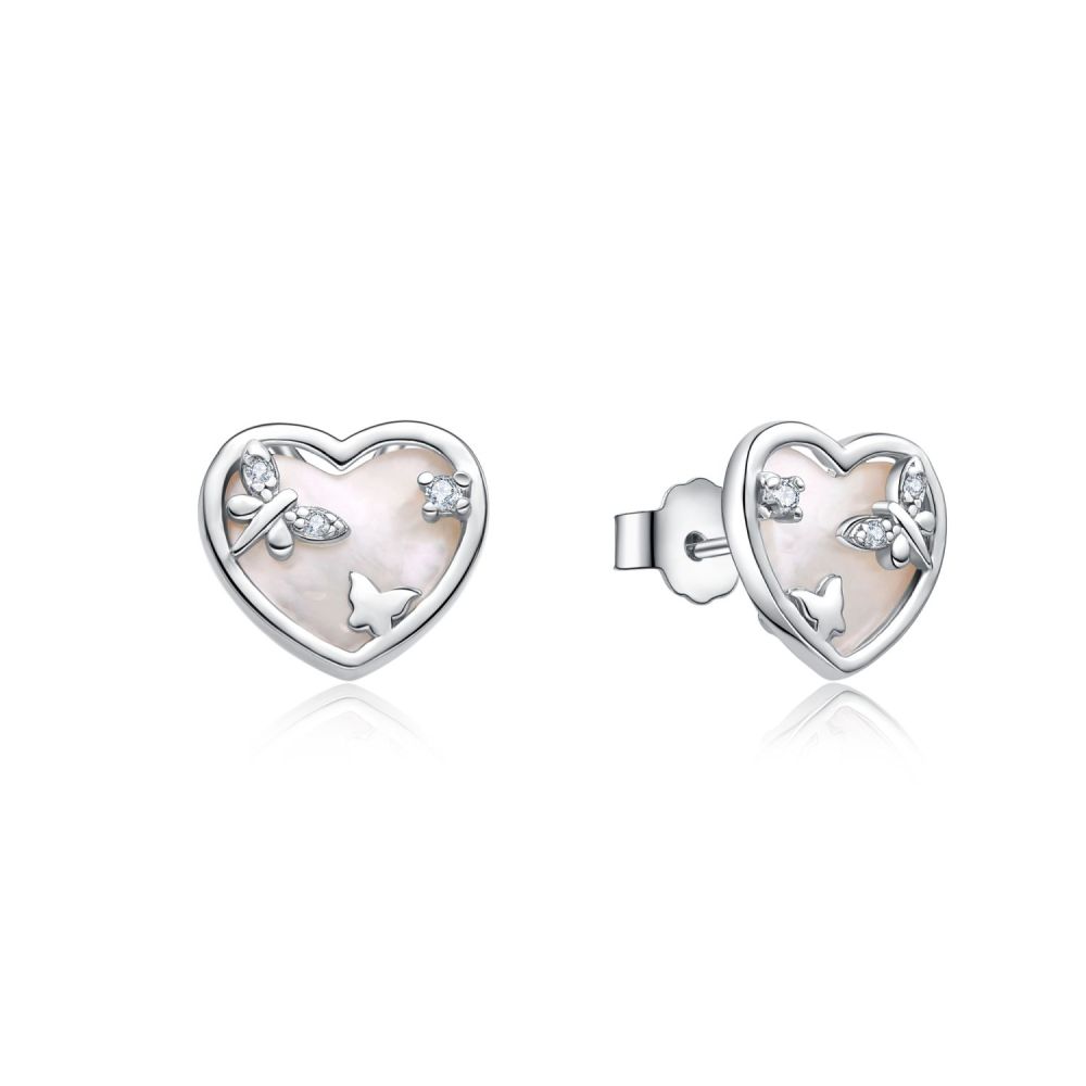 MOISS stříbrné náušnice SRDCE s perletí jsou romantickým šperkem, který spojuje jemný lesk perleti s elegantním designem srdce.