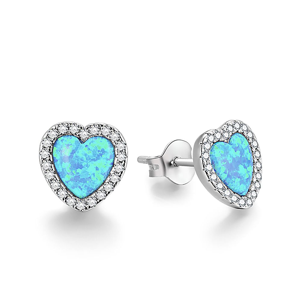 MOISS stříbrné náušnice SRDCE OPÁL