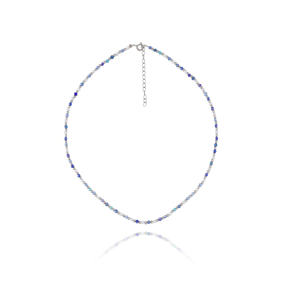 Stříbrný korálkový náhrdelník MOISS s jemnými modrými a světle šedými korálky je elegantním a nadčasovým doplňkem.