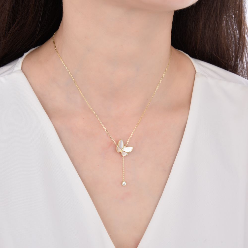 MOISS stříbrný náhrdelník MOTÝL GOLD