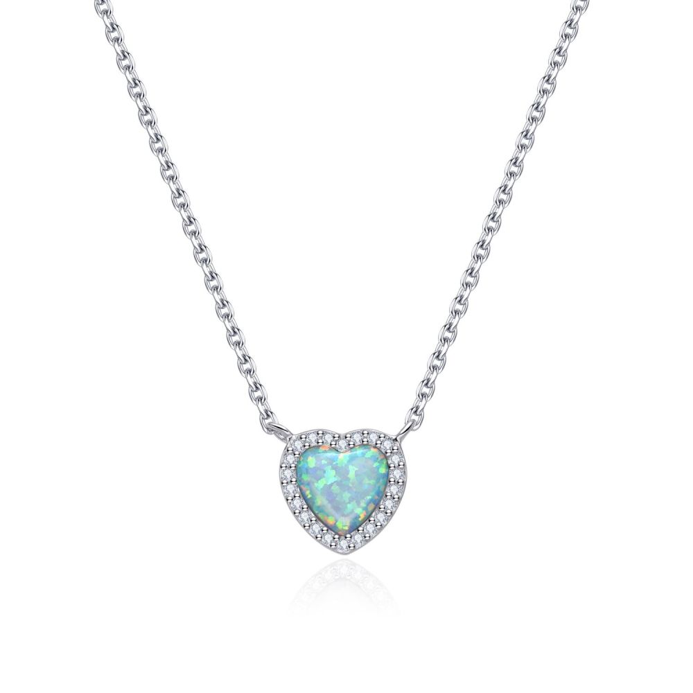 MOISS stříbrný náhrdelník OPÁL SRDCE