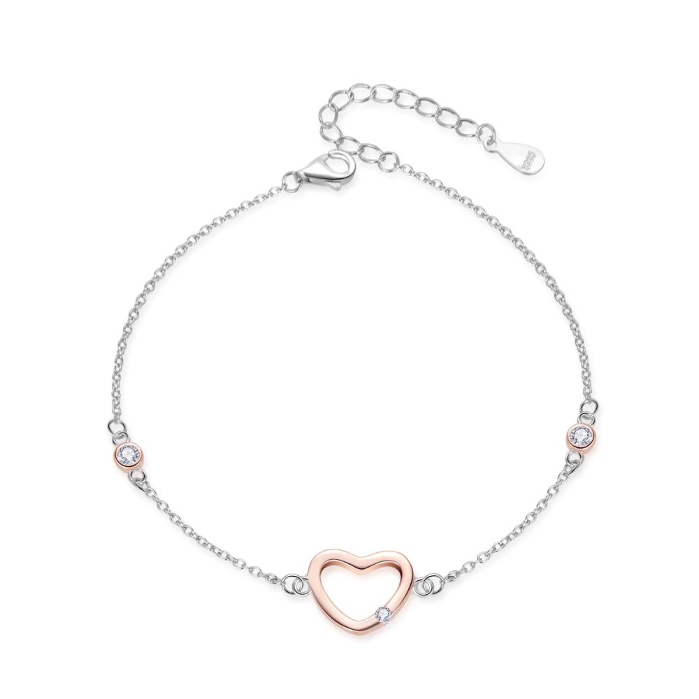 MOISS stříbrný náramek BICOLOR ROSE SRDCE