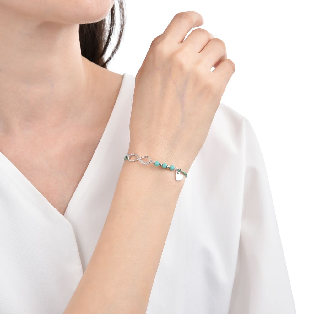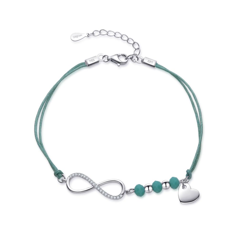 Elegantní stříbrný náramek MOISS se symbolem nekonečna v zeleném provedení je jemným vyjádřením rovnováhy, naděje a nekonečného spojení.