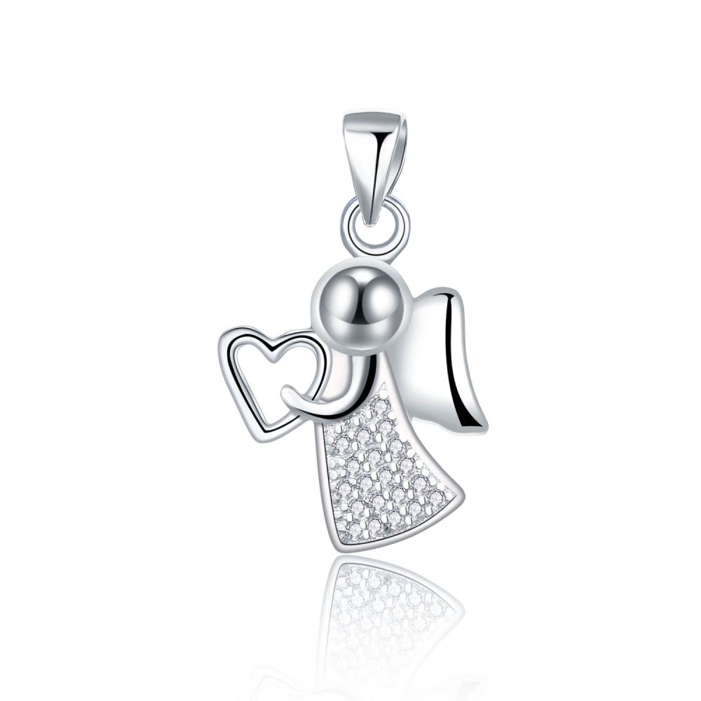 Stříbrný přívěsek MOISS s motivem anděla nesoucího srdce je jemným symbolem lásky, ochrany a něhy. Elegantní šperk s hlubokým významem.