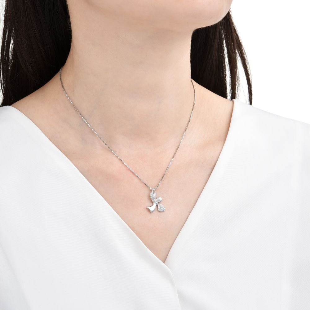Jemný stříbrný přívěsek ANDĚL nesoucí srdce z kolekce MOISS je symbolem ochrany, lásky a klidu. Elegantní šperk s hlubokým emočním významem.