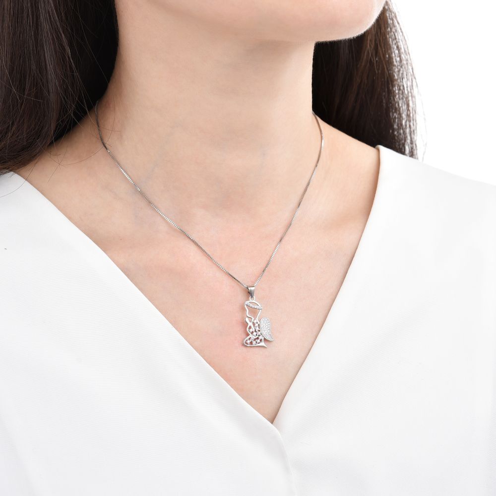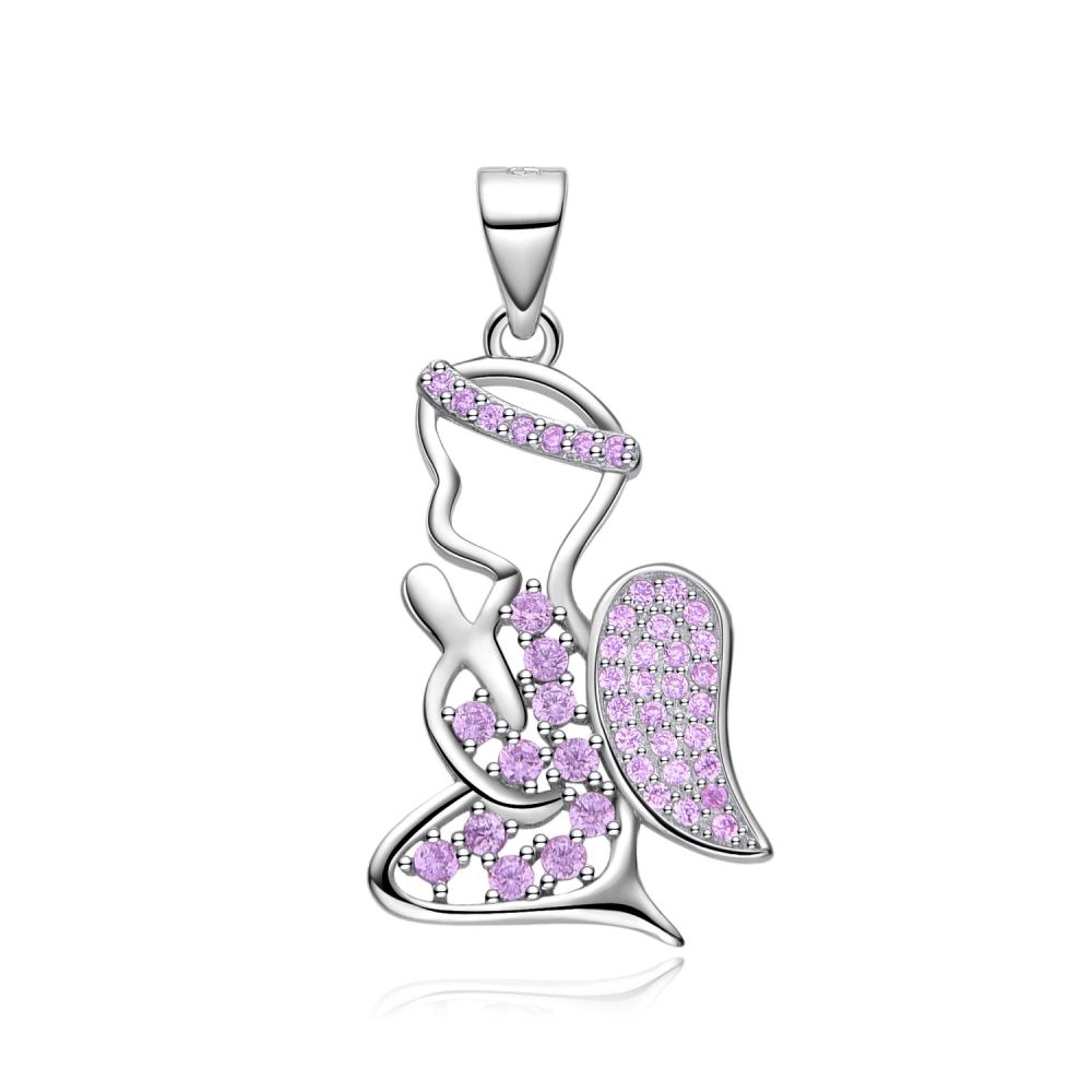 Jemný stříbrný přívěsek MOISS ANDĚL s růžovými zirkony je symbolem ochrany, lásky a něžné elegance s romantickým nádechem.