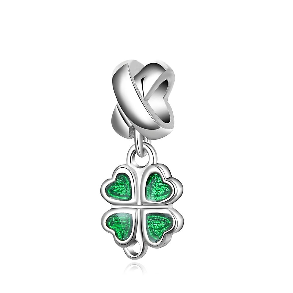Stříbrný přívěsek MOISS ve tvaru čtyřlístku na náramek je jemným symbolem štěstí, naděje a pozitivní energie v elegantním provedení.