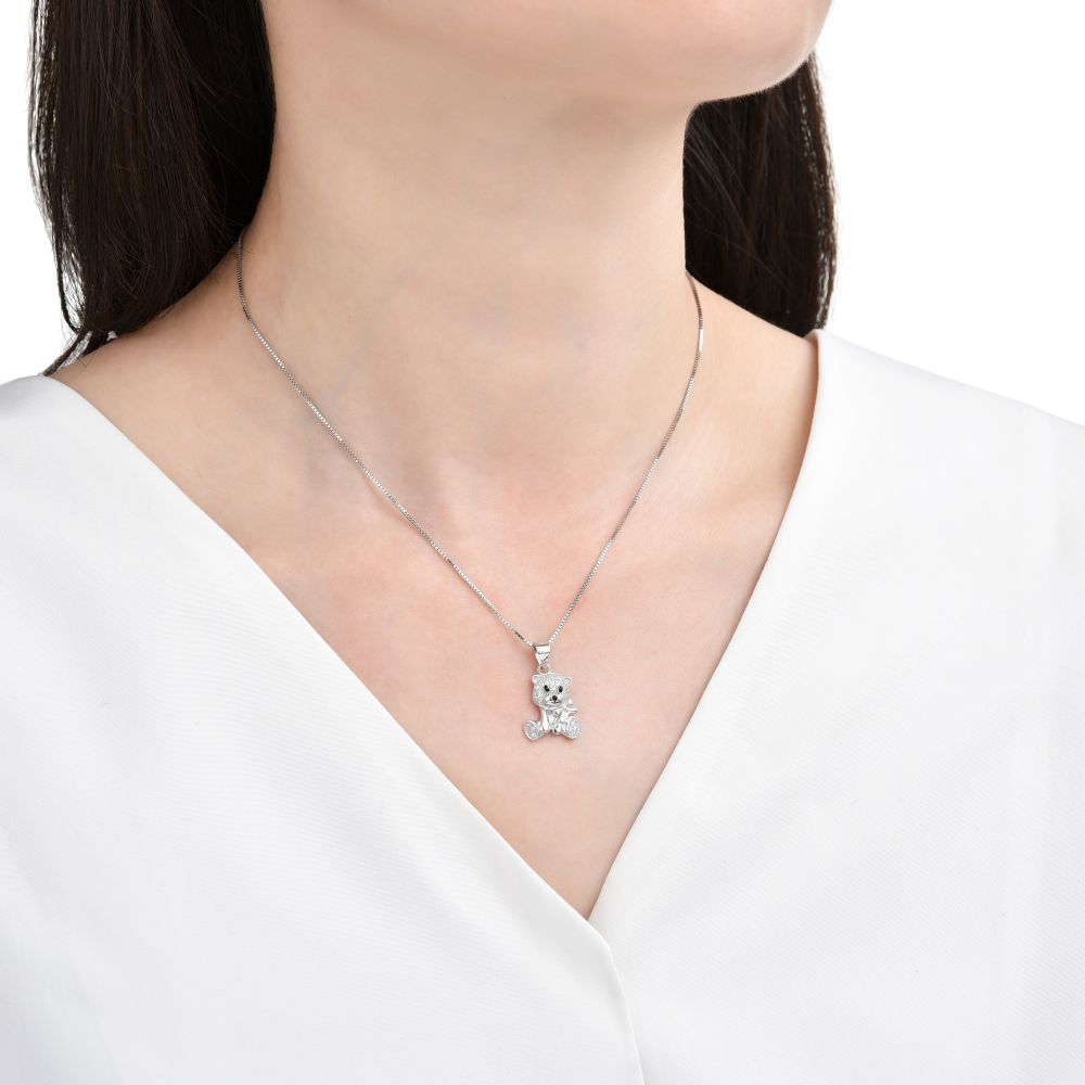 Jemný stříbrný přívěsek MOISS s motivem medvídka je roztomilým symbolem lásky, něhy a hravé elegance.