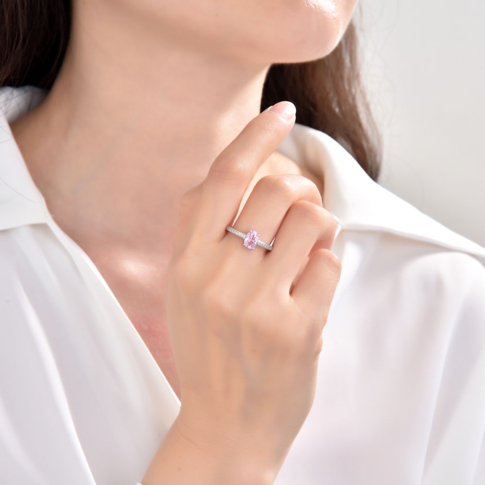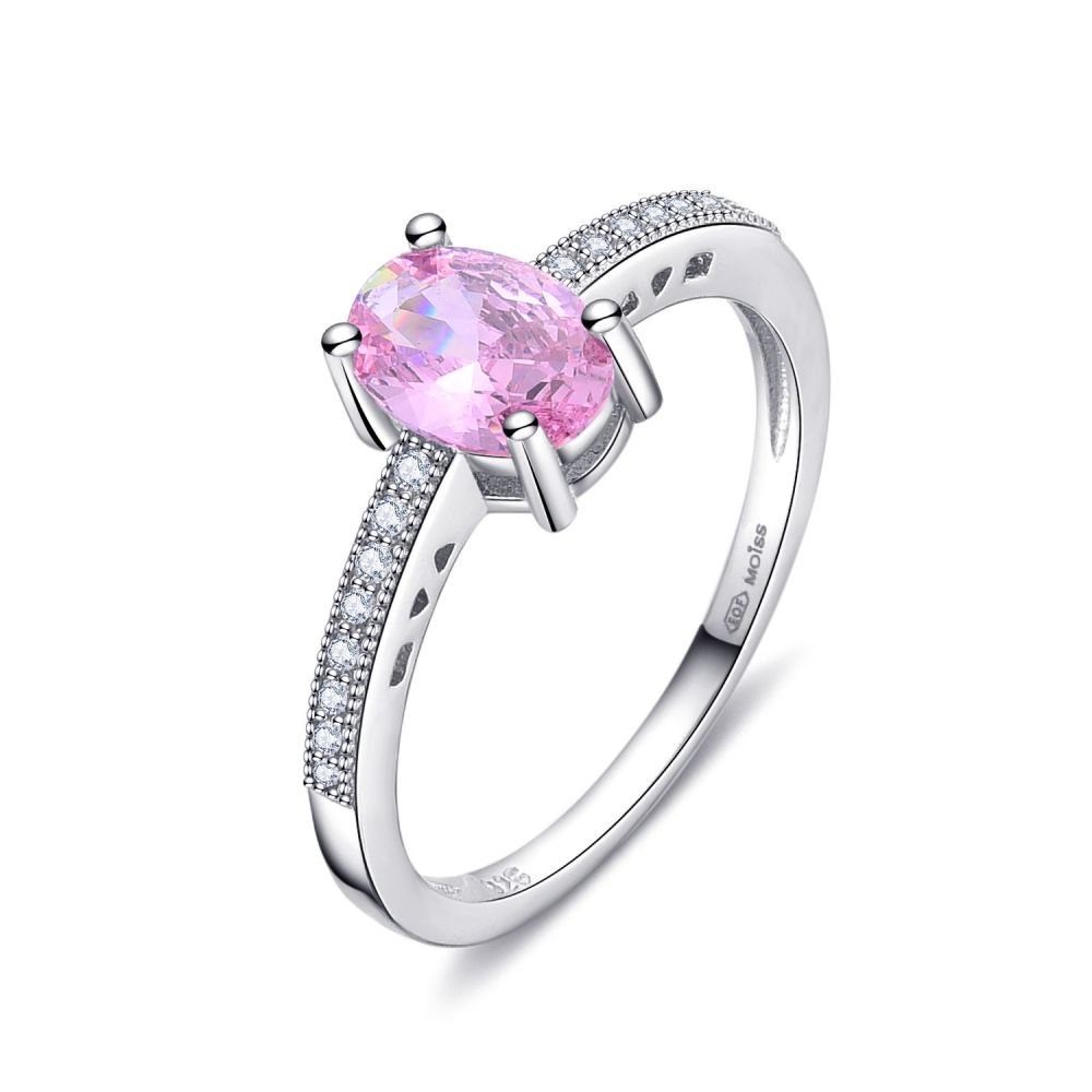 Stříbrný prsten MOISS s dominantním růžovým zirkonem a drobnými čirými kameny okouzlí jemnou ženskostí a luxusním třpytem.