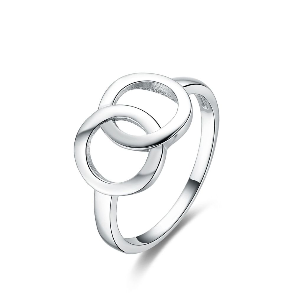 Elegantní stříbrný prsten MOISS se dvěma spojenými kruhy symbolizuje propojení, jednotu a nadčasovou ženskost.