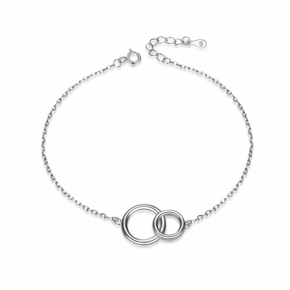 Jemný stříbrný náramek na nohu MOISS s motivem kruhů je elegantním letním doplňkem, který podtrhne ženskost a lehkost každého kroku.